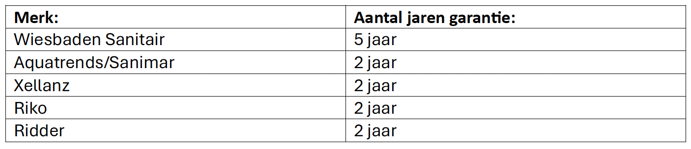 De garantie gaat in op de dag van levering en vervalt: